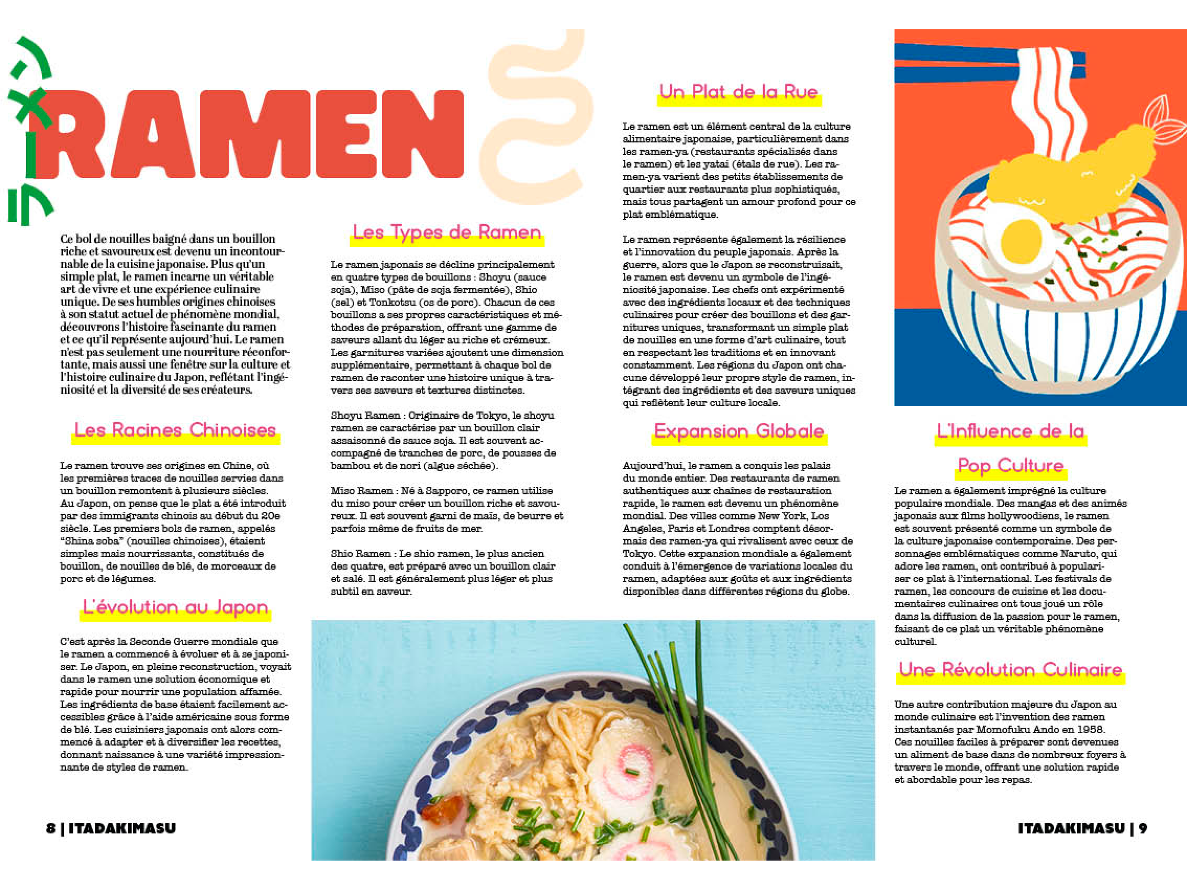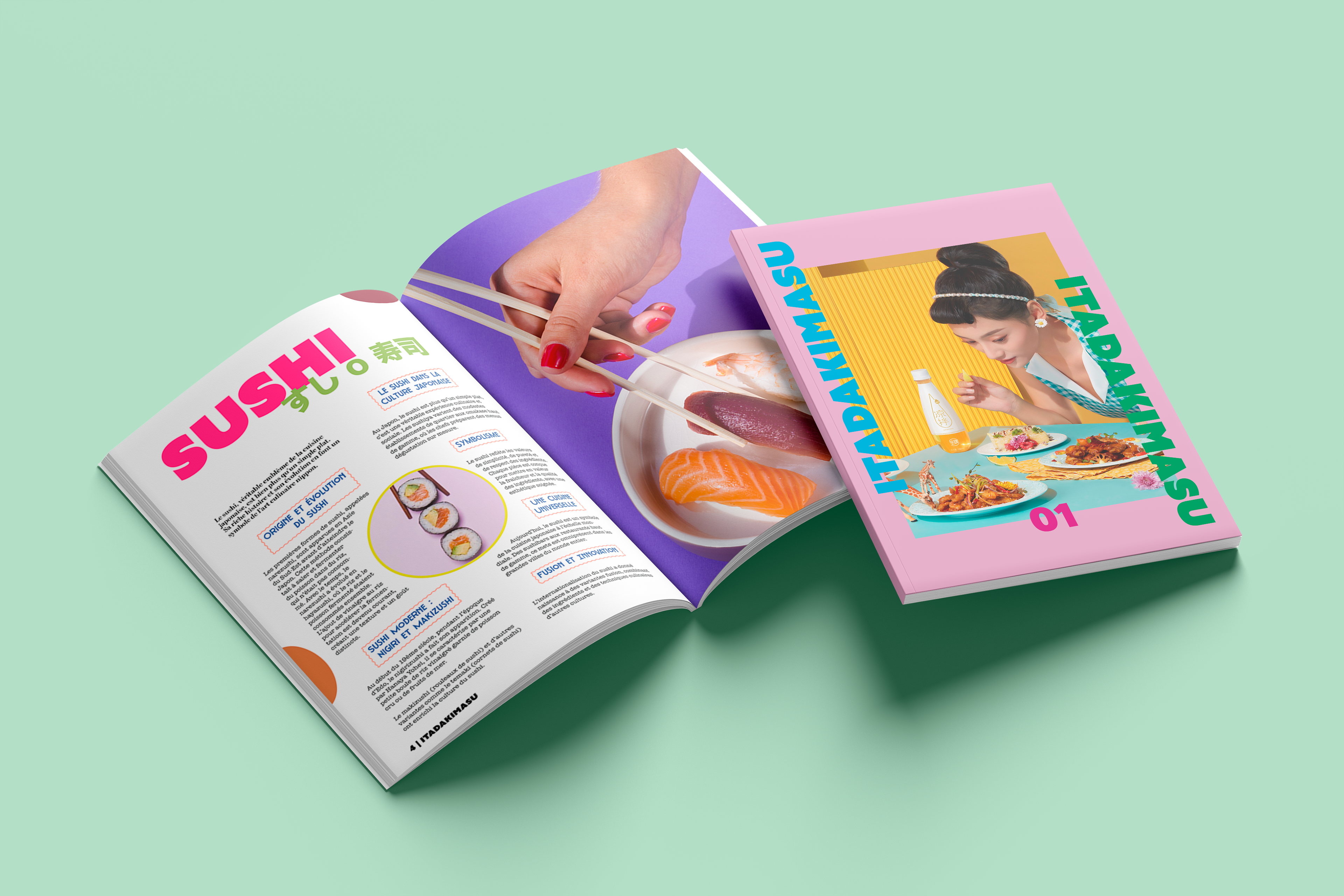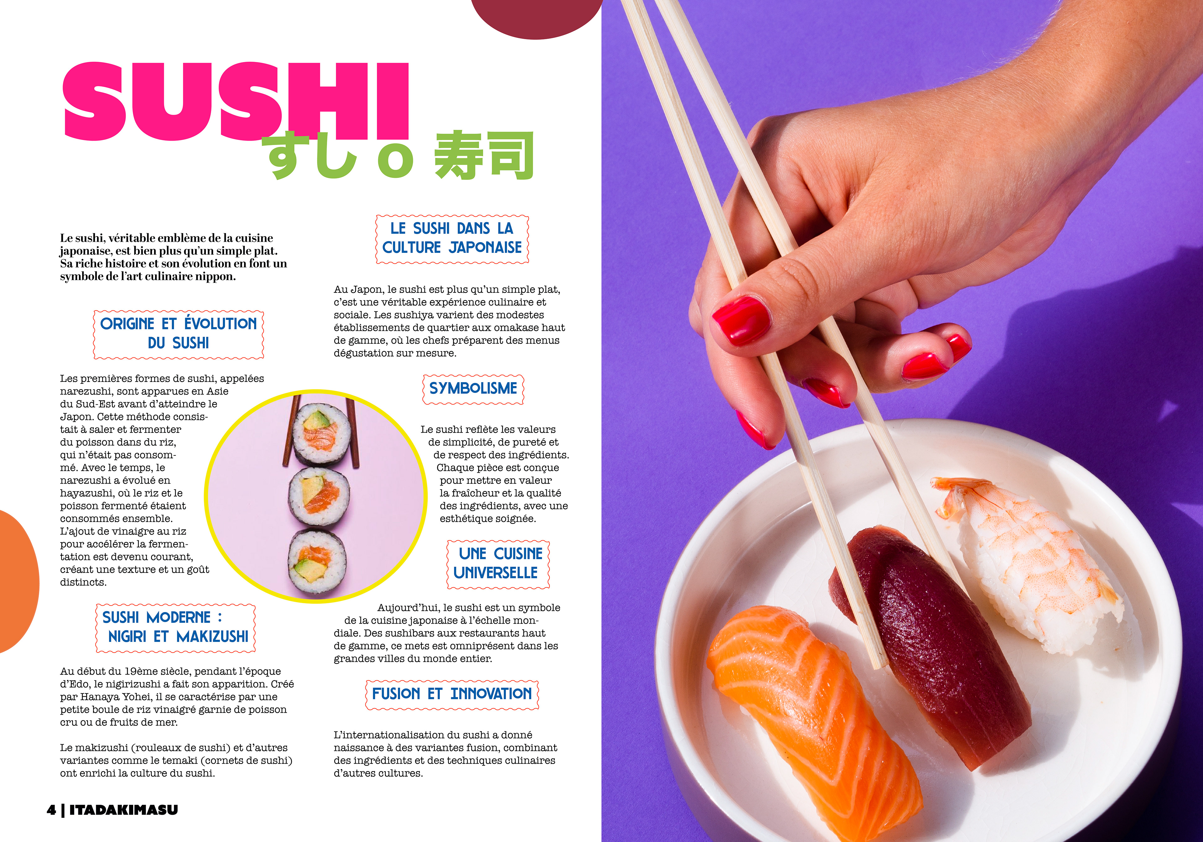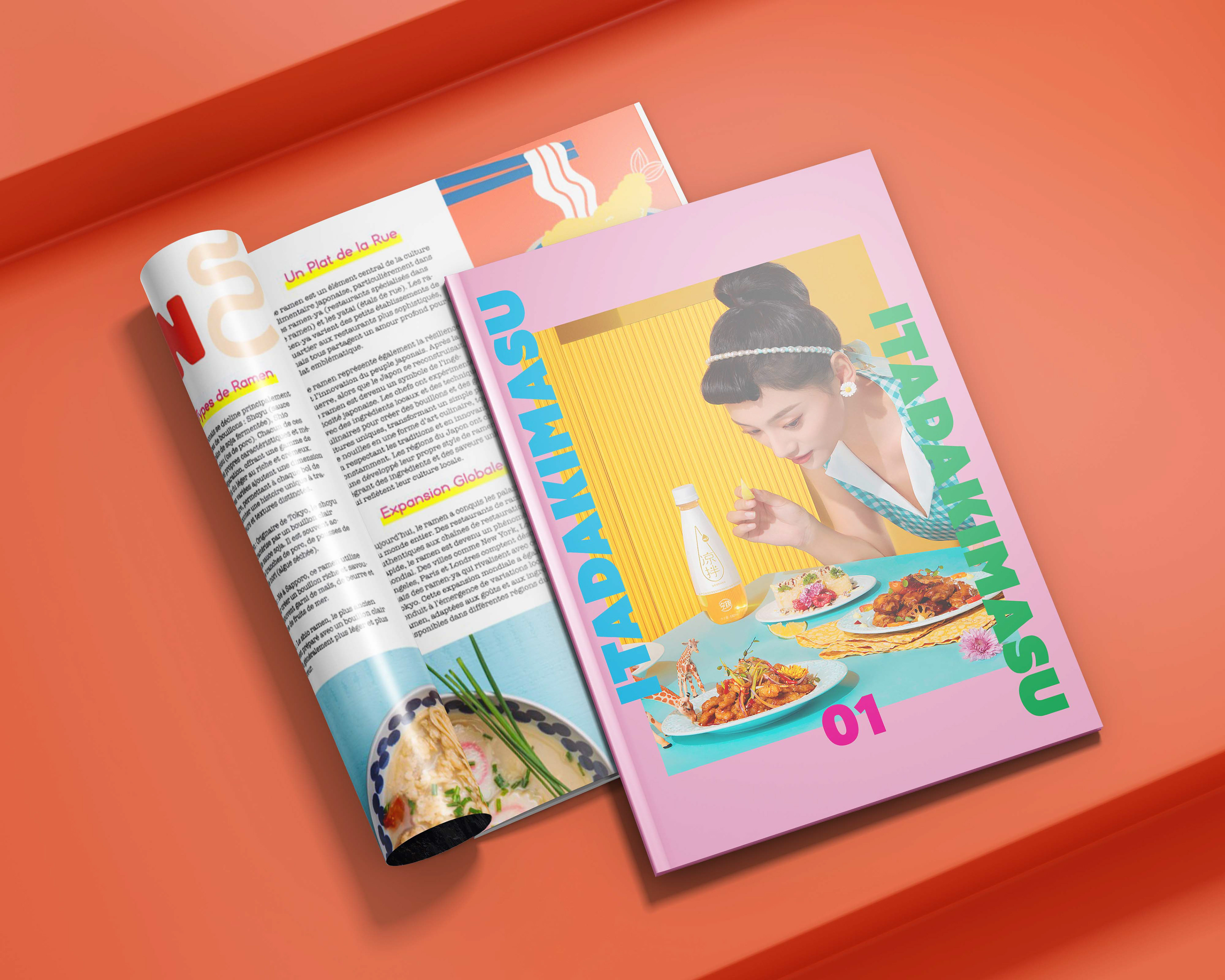 Création d’un univers graphique immersif célébrant la cuisine japonaise à travers une approche visuelle vivante. L’esthétique pop du Japon rencontre la mise en page éditoriale : typographies expressives, compositions dynamiques et palettes éclatantes traduisent l’énergie et la générosité des plats. Chaque détail visuel est pensé pour éveiller les sens, capter l’attention et transmettre la joie propre à cet art culinaire. Intuit Lab 2024